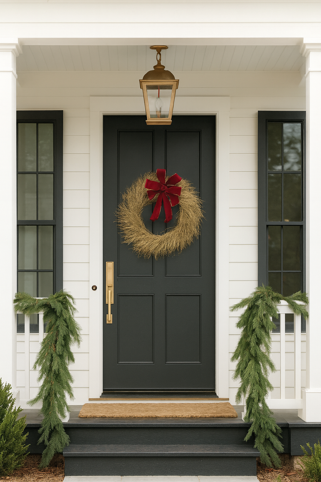 A timeless holiday statement piece, this wreath is handcrafted from natural dried quail brush twigs, delicately painted in a warm metallic gold for a subtle shimmer. Finished with a rich burgundy velvet bow, it blends organic texture with elegant holiday charm—perfect for welcoming the season in style.