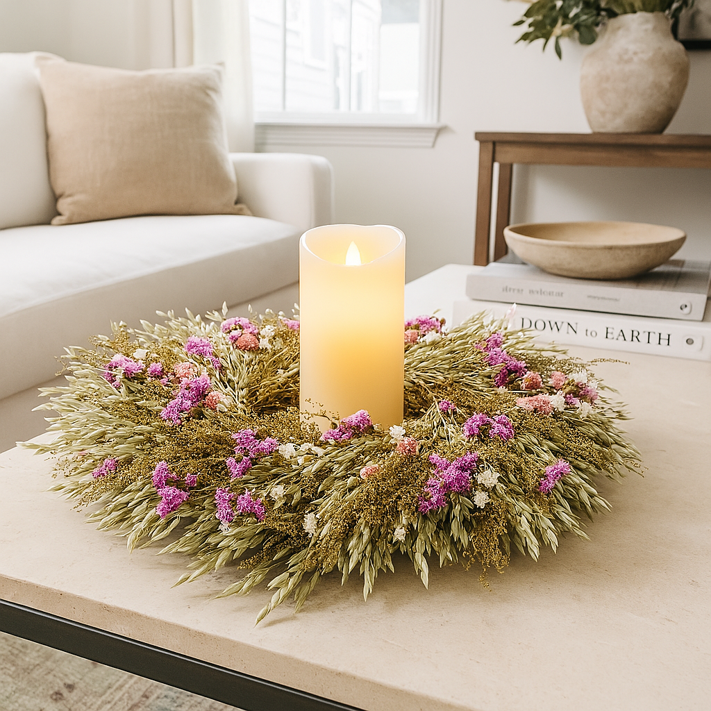 Dried Flowers: Our dried flower arrangements are made from natural botanicals and are ideal for indoor display. They can be hung outdoors under a fully covered patio, but please note that even under cover, exposure to sun, wind, or humidity may cause fading or deterioration. For best longevity, avoid direct sunlight, moisture, and fluctuations in temperature. When cared for properly and used indoors, dried flowers can last for years.