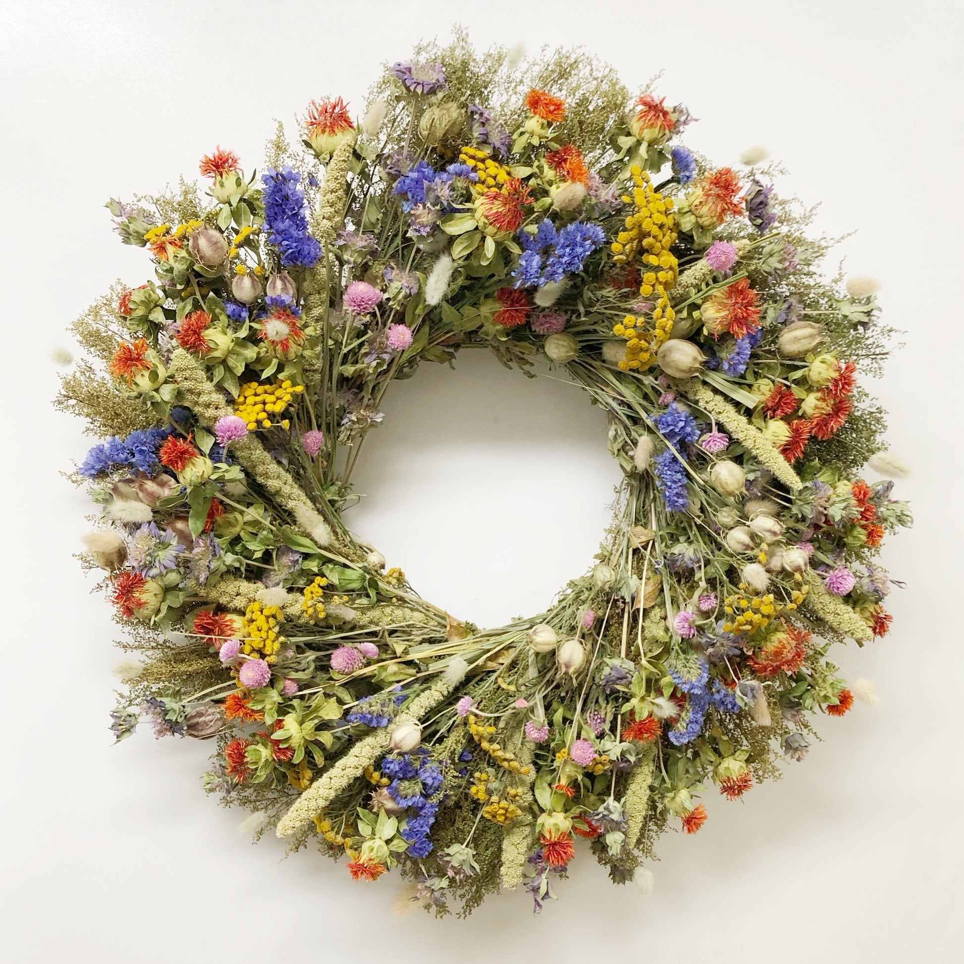 Dried Flowers: Our dried flower arrangements are made from natural botanicals and are ideal for indoor display. They can be hung outdoors under a fully covered patio, but please note that even under cover, exposure to sun, wind, or humidity may cause fading or deterioration. For best longevity, avoid direct sunlight, moisture, and fluctuations in temperature. When cared for properly and used indoors, dried flowers can last for years.