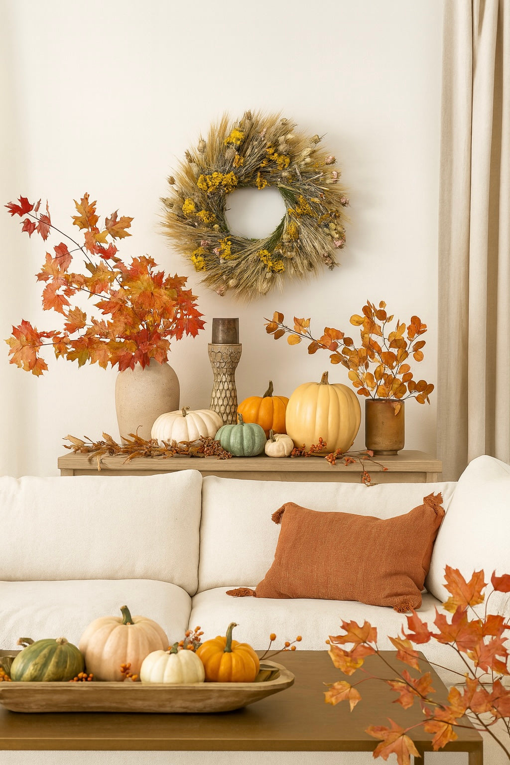 Dried Flowers: Our dried flower arrangements are made from natural botanicals and are ideal for indoor display. They can be hung outdoors under a fully covered patio, but please note that even under cover, exposure to sun, wind, or humidity may cause fading or deterioration. For best longevity, avoid direct sunlight, moisture, and fluctuations in temperature. When cared for properly and used indoors, dried flowers can last for years.